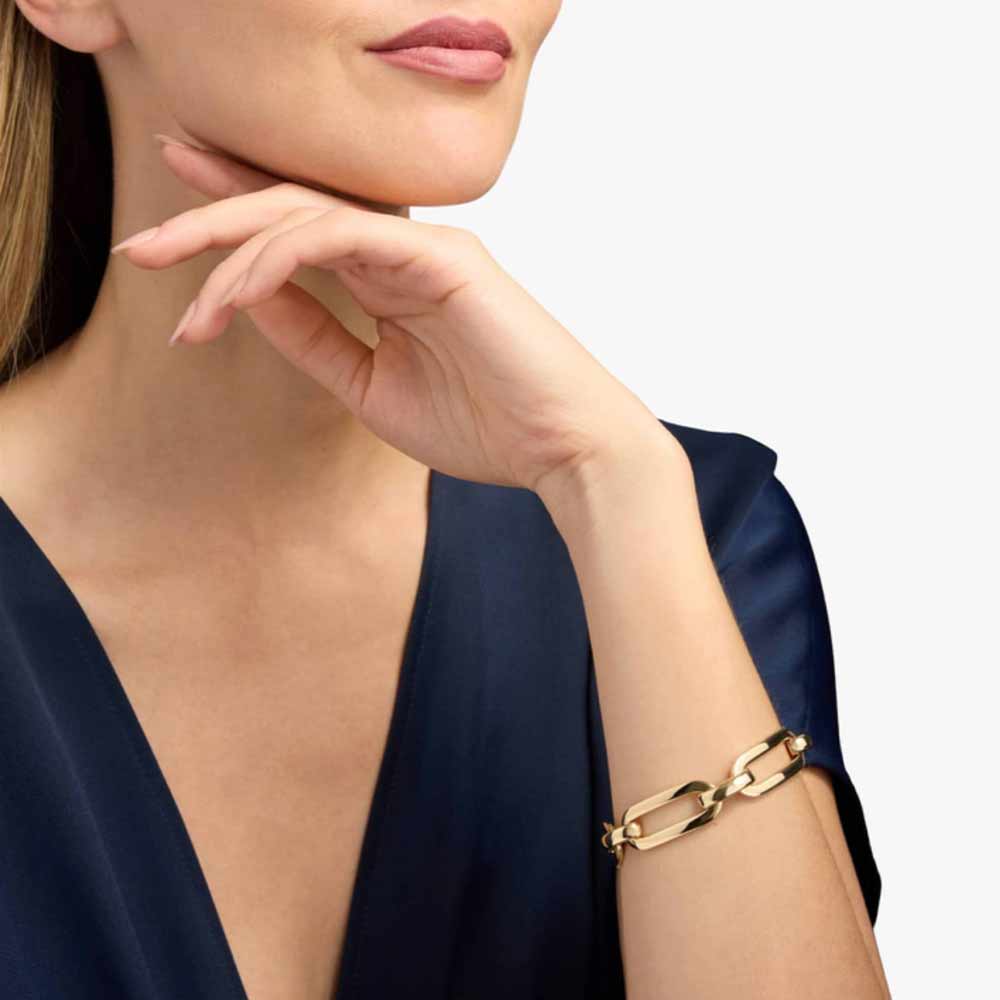 Style: Modern large link bracelet in rich yellow gold