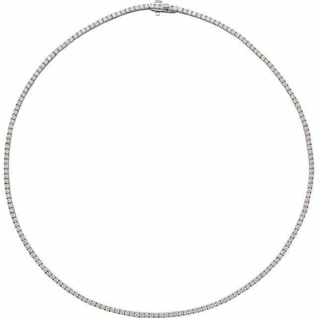 It’s a simple design: a neat collar of sparkling white diamonds (5.75 carats of conflict-free environmentally friendly. to be precise) set in recycled 14-karat gold. It’s accented by an offset section of gems graduating in size ?? somehow both timeless and modern.