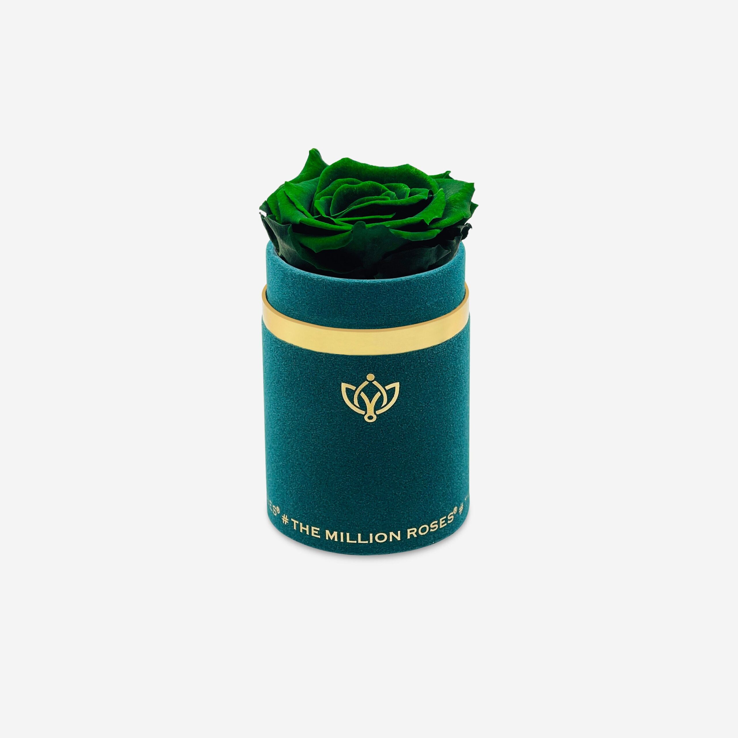One rose says it all in this dark green suede box adorned with a gorgeous and long-lasting dark green rose.