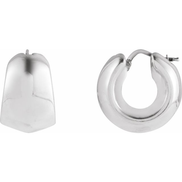 - Hoops are 15mm wide and 22mm long. Each hoop closes with a levered catch.